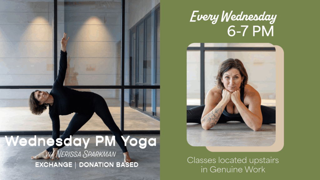 Midweek reset, by design. Join Nerissa Sparkman for a donation-based evening yoga practice focused on grounding, mobility, and breath. This all-levels session welcomes bodies of all kinds and prioritizes presence over performance.